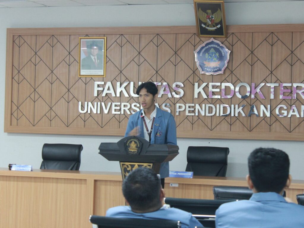 Selanjutnya, sambutan sekaligus pembukaan acara secara resmi disampaikan oleh Dekan yang diwakili oleh Dr. dr. Ketut Indra Purnomo, S.Ked., M.Kes. Dalam sambutannya, beliau mengapresiasi konsistensi TBM-AS dalam menjaga nilai-nilai organisasi, profesionalisme, serta semangat pengabdian kepada masyarakat. Beliau juga berharap agar kepengurusan yang terpilih nantinya mampu membawa TBM-AS menjadi organisasi yang semakin solid dan berdampak positif.