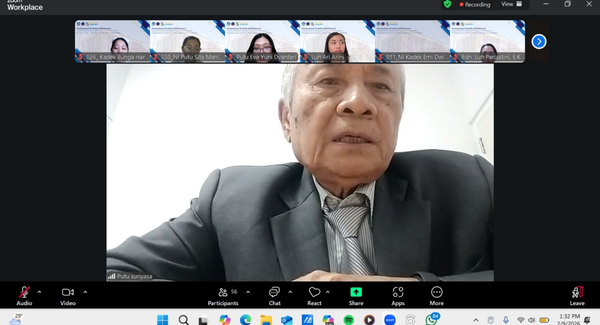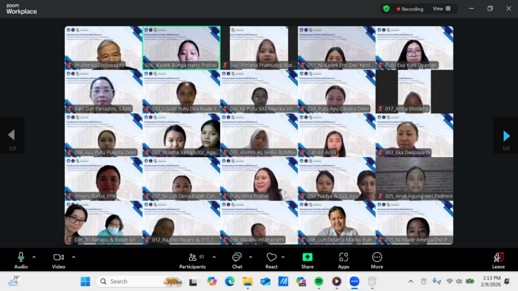 Singaraja – Pembukaan Kegiatan Praktik Klinik Kebidanan III pada mahasiswa Semester VI Program Studi D3 Kebidanan Fakultas Kedokteran Universitas Pendidikan Ganesha telah dilaksanakan pada hari Senin, 09 Februari 2026. Acara ini dibuka oleh Dekan Fakultas Kedokteran Universitas Pendidikan Ganesha (Undiksha), Prof. Dr. M. Ahmad Djojosugito, dr. Sp.OT(K), MHA, MBA secara daring. Dalam acara pembukaan ini, turut hadir Bapak/Ibu Wakil Dekan Fakultas Kedokteran, para Clinical Instructor (CI) dalam hal ini Praktik Mandiri Bidan di Wilayah Kabupaten Buleleng, Clinical Teacher (CT) atau Pembimbing Institusi serta Mahasiswa semester VI.