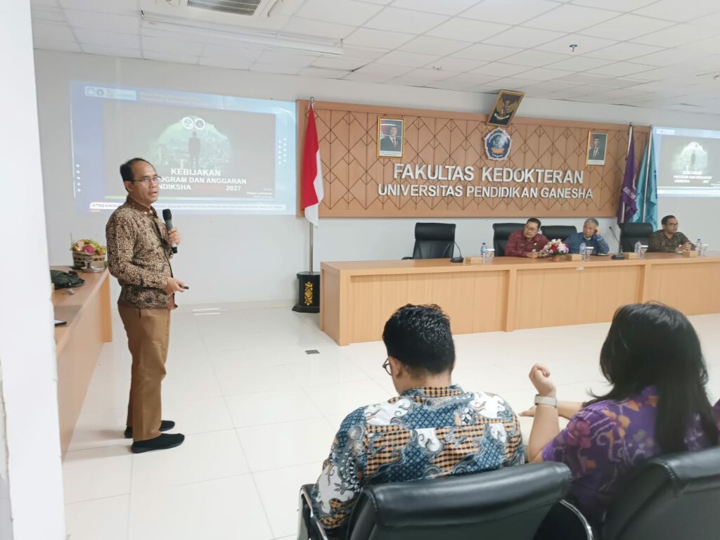 Singaraja – Fakultas Kedokteran Universitas Pendidikan Ganesha terus menunjukkan komitmennya dalam meningkatkan mutu pendidikan dan layanan. Sebagai langkah strategis menyongsong masa depan, FK Undiksha menyelenggarakan Focus Group Discussion (FGD) Penyusunan Program dan Penetapan Alokasi Anggaran Tahun 2027 pada tanggal 27-28 Januari 2026 bertempat di Ruang Seminar Lantai 3, Gedung Laboratorium Terintegrasi, Fakultas Kedokteran Universitas Pendidikan Ganesha. Kegiatan ini dihadiri oleh Rektor yang diwakili oleh Kepala Biro Keuangand dan Umum, Jajaran Dekanat, Ketua Jurusan, Koordinator Program Studi, Kepala Laboratorium, Dosen, mahasiswa serta unit-unit terkait di lingkungan FK Undiksha.